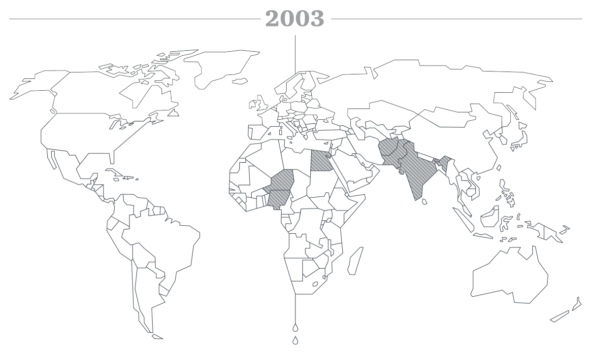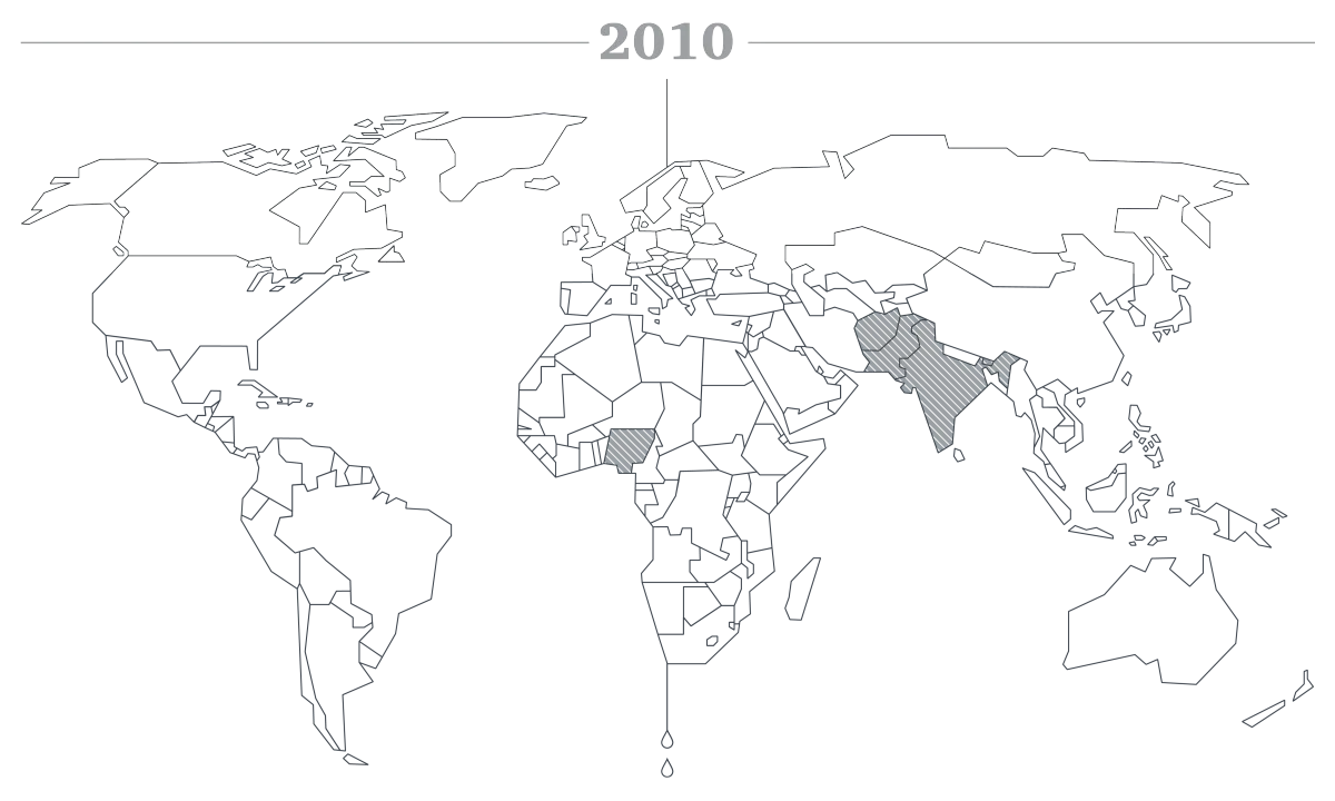 The number of polio-endemic countries drops to 4 - Afghanistan, India, Nigeria, Pakistan.